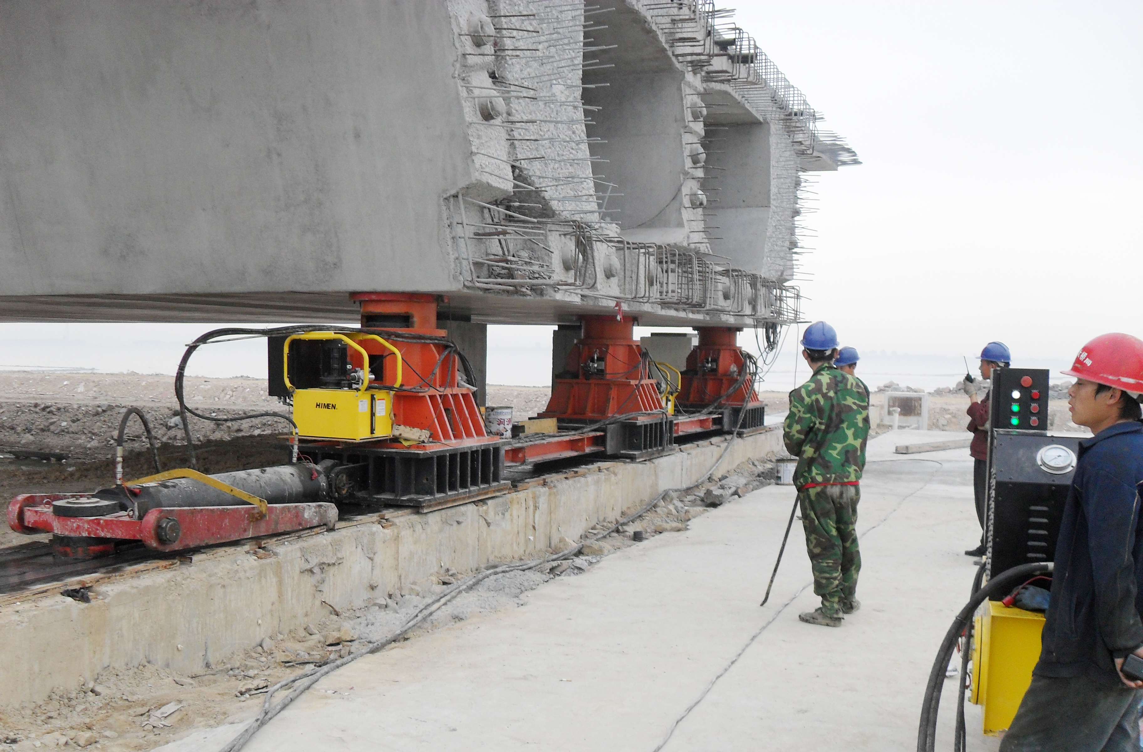 针对广深沿江高速跨海段箱梁顶升和平移的工况,曾经为东海大桥、杭州湾跨海大桥、胶州湾跨海大桥和上海长江大桥等工程的混凝土巨型箱梁提供重载顶升和平移工程解决方案的赫曼技术团队,经过和建造方中铁大桥局技术团队的多次技术交流,最终设计了一套型号为SL-P-WP-6-4800-800的电脑控制重载高精度同步顶升和恒压控制功能为核心的顶升移梁设备解决方案,该方案具有以下典型特征并最终完美地实现了“世界梁王”的多点同步顶升、长距离平移技术难题: