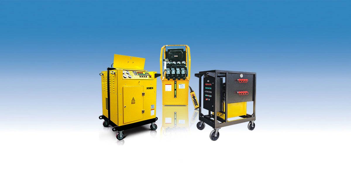 型号为SEPR64120W-4B的B型SEPR系列4点同步泵站,用于江苏江阴长江大跨越385米特高压输电塔的底部标准节的同步顶升